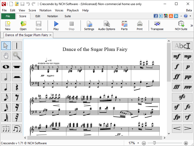 Crescendo Music Notation Editor — это мощное приложение для создания и редактирования музыкальных партитур, предназначенное как для новичков, так и для опытных композиторов. Программа предоставляет широкий набор инструментов для записи музыки в цифровом виде с поддержкой различных нотаций, метрик и тональностей. Благодаря интуитивному интерфейсу и гибким настройкам, работа с нотацией становится простой и эффективной.