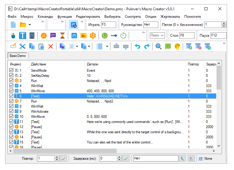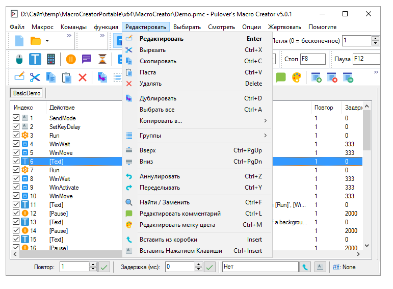 Pulover’s Macro Creator v5.4.0 — это мощный инструмент для автоматизации задач на компьютере, основанный на движке AutoHotkey. Программа позволяет создавать макросы любого уровня сложности, записывать действия мыши и клавиатуры, а также управлять окнами, файлами и приложениями. Благодаря поддержке русского интерфейса, работа с ПО становится доступной даже для пользователей без опыта программирования.