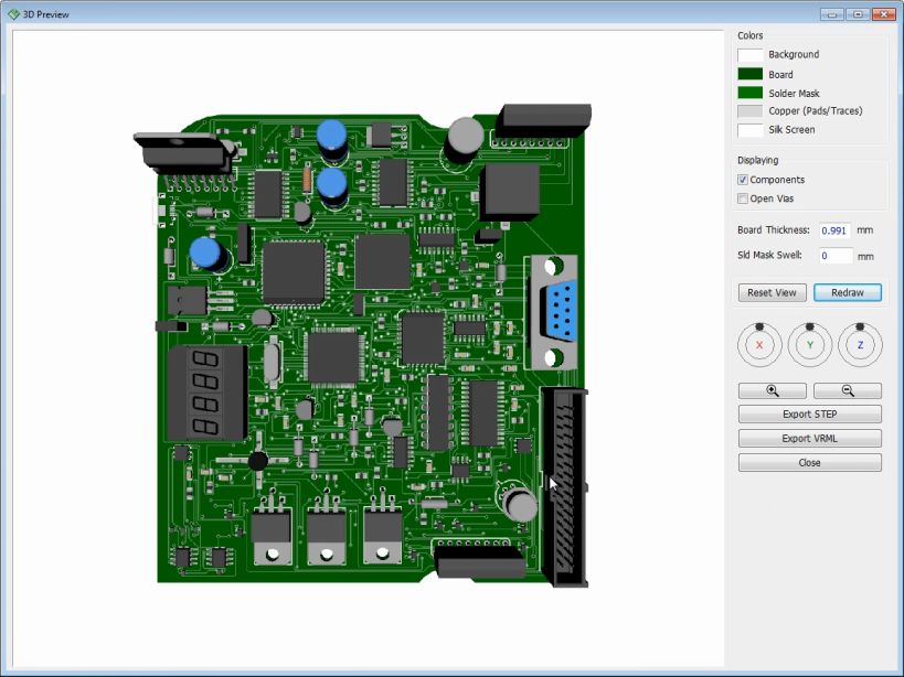 - Интегрированный 3D Viewer позволяет визуализировать собранную плату с установленными компонентами, что особенно полезно при проверке размеров и взаимного расположения элементов
