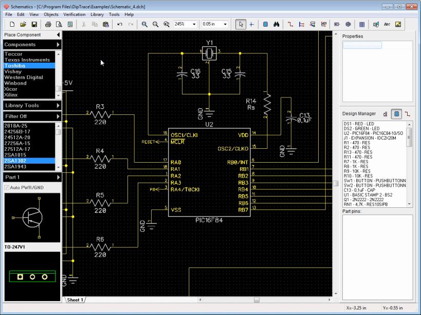 - DipTrace поддерживает многолистовые и иерархические схемы в модуле Schematic, обеспечивая логическую целостность проекта и удобную работу с большими проектами