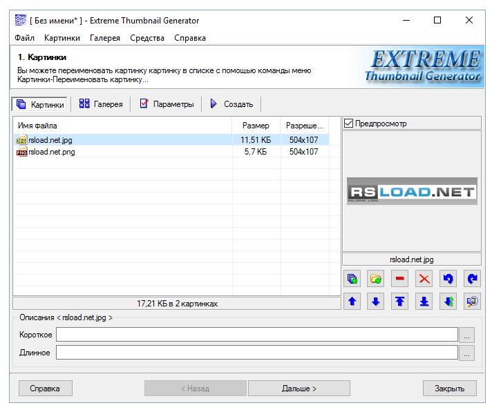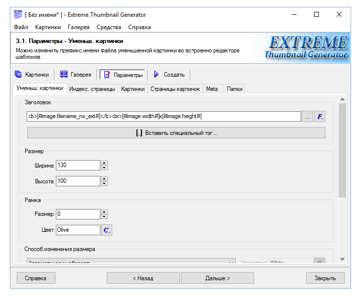 Работа с Extreme Thumbnail Generator
