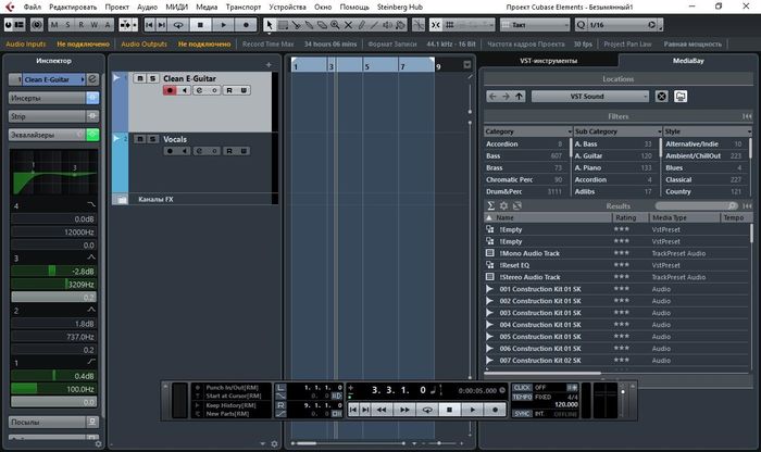 - Наличие множества встроенных инструментов и эффектов, включая плагины Steinberg.