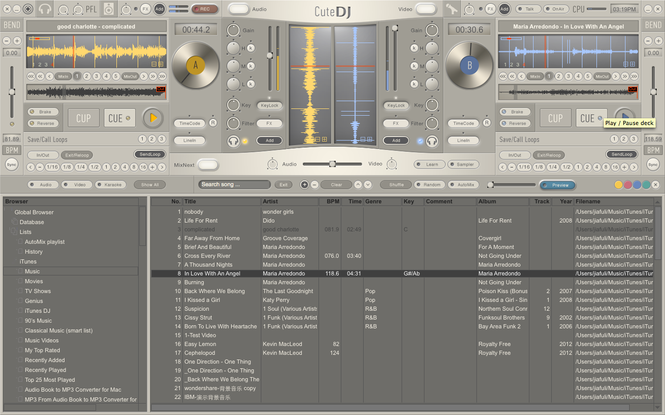 CuteDJ — это многоплановая DJ-станция, разработанная для высокоточного микширования музыки, видео и караоке. Приложение отличается интуитивно понятным дизайном, который позволяет быстро освоиться даже новичкам в мире диджеинга. Софт обеспечивает стабильную работу с аудиодорожками, поддерживает синхронизацию темпа и тональности, а также предлагает широкий выбор эффектов для творческого оформления сета. Особое внимание стоит уделить встроенному алгоритму микширования, который минимизирует разрывы между треками и обеспечивает плавный переход.