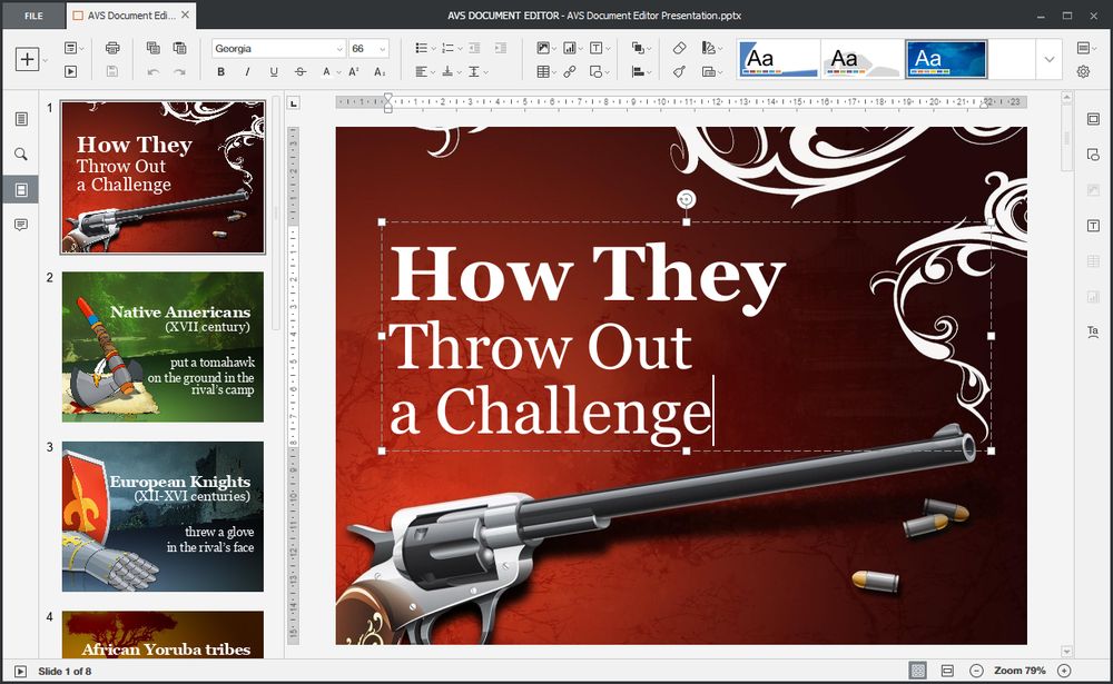 - Поддержка презентаций, включая анимации, переходы и вставку мультимедиа