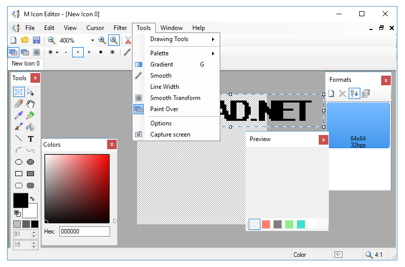- Поддержка создания и редактирования иконок с разрешением до 768×768 пикселей