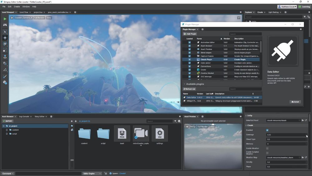 Использование Autodesk Stingray предполагает работу в единой экосистеме, где проекты из 3ds Max или Maya можно отправлять напрямую в движок с помощью плагинов. После импорта объекты сохраняют все материалы, освещение и настройки, что дает возможность продолжить их редактирование в Stingray без потери качества. Интерфейс движка интуитивно понятен, но требует некоторого времени на изучение, особенно если речь идет о настройке поведения объектов, триггеров и скриптов. Поддержка компонентного подхода позволяет быстро собирать игровые механики и интерактивные сцены, а встроенный браузер ресурсов помогает эффективно управлять ассетами. Работа с частицами, постобработкой и звуком реализована на высоком уровне, что особенно важно для создания атмосферных проектов.