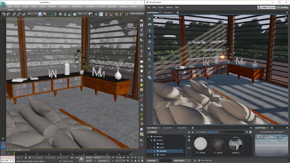 Автоматическая синхронизация с проектами из Autodesk 3ds Max и Maya делает процесс разработки значительно быстрее и удобнее.