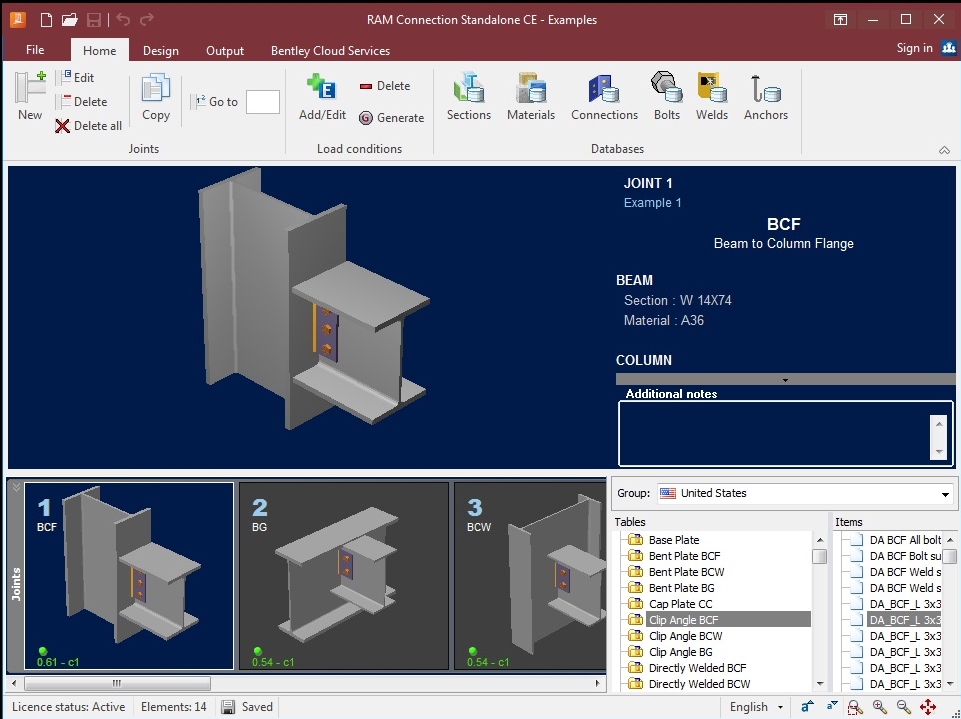 Освоение Bentley RAM Connection начинается с создания или импорта модели конструкции. Пользователь может выбрать тип соединения — базу колонны, балочные стыки, крепление ферм, уголковые и пластинчатые соединения — и задать параметры. Программа автоматически проверяет соответствие конструктивных решений нормативным требованиям, выявляя потенциальные ошибки. В процессе работы доступен режим 3D-представления, где можно в деталях рассмотреть каждый элемент соединения, включая болты, сварные швы и опорные пластины. Расчёт нагрузок осуществляется с учётом веса конструкции, ветровых и снеговых воздействий, сейсмических факторов и других внешних сил. Результаты расчётов выводятся в виде отчётов, пригодных для экспертизы и утверждения.