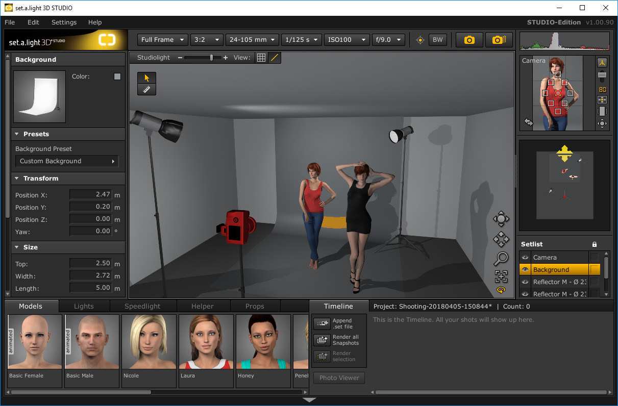 set.a.light 3D STUDIO Edition 2.00.15 — это передовое программное решение для моделирования виртуальной фотостудии с возможностью реалистичного проектирования освещения и пространства. Программа предоставляет профессионалам и начинающим фотографам инструменты для точного визуального планирования съёмочных процессов в трёхмерной среде. Благодаря детализированной настройке света, расположения оборудования и параметров помещения, пользователи могут заранее моделировать сцену и предугадывать результат фотографии.