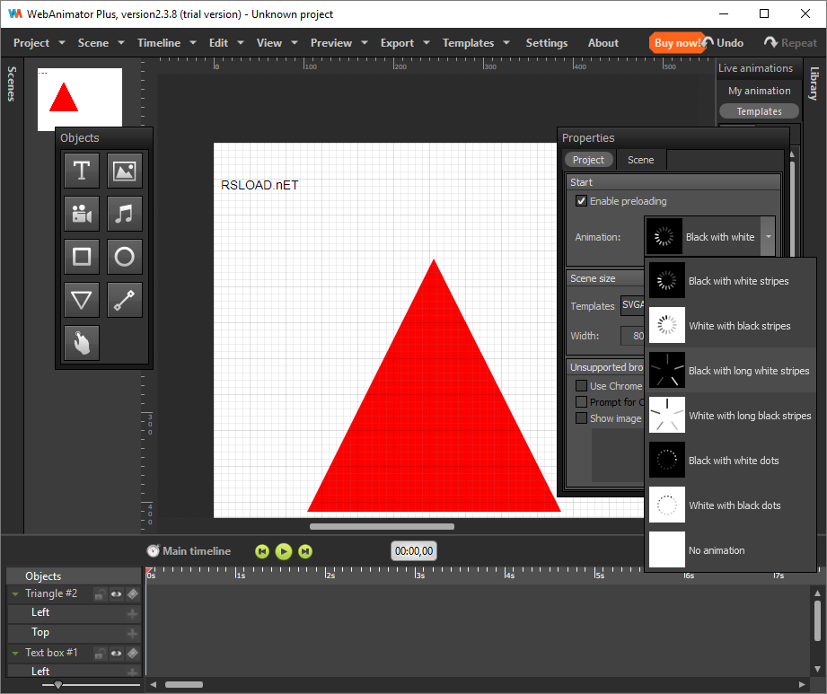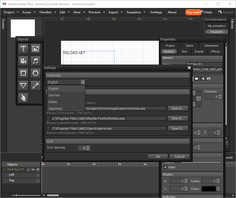 - Возможность экспорта анимаций в виде HTML5-кода для лёгкого внедрения на сайт