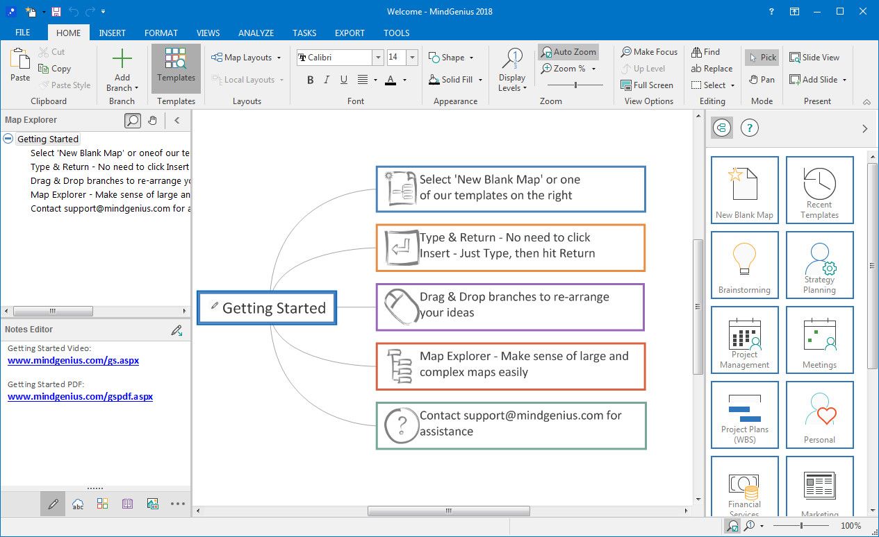 MindGenius Business представляет собой универсальное решение для тех, кто стремится улучшить организацию рабочих процессов и визуализировать сложные данные. Программа поддерживает создание интеллект-карт по различным шаблонам, включая стратегическое планирование, управление проектами и личную продуктивность. Архитектура интерфейса позволяет быстро переключаться между режимами отображения, чтобы адаптировать визуализацию под конкретную задачу.