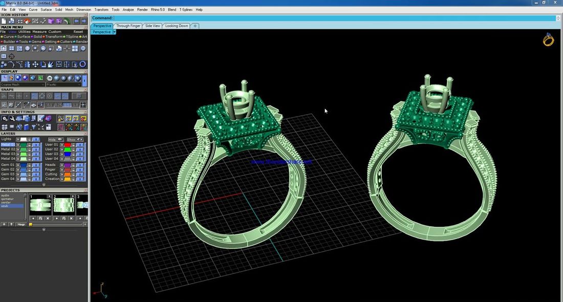 Программа Gemvision Matrix 9.0 build 7349 — мощный инструмент для 3D-моделирования ювелирных изделий, сочетающий высокую точность, функциональность и возможность реализации сложных дизайнерских идей. Благодаря продуманной архитектуре, каждый этап проектирования проходит с максимальной детализацией и реалистичностью. Несмотря на отсутствие официальной русской локализации, программное обеспечение активно используется в профессиональной среде и позволяет создавать виртуальные прототипы колец, ожерелий, браслетов и других изделий с учетом всех технологических параметров, включая тип оправы, размер камней и особенности гранения.