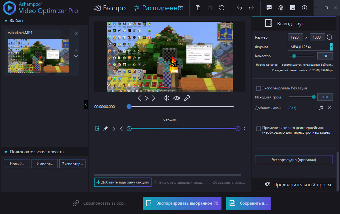 Работа с Ashampoo Video Optimizer
