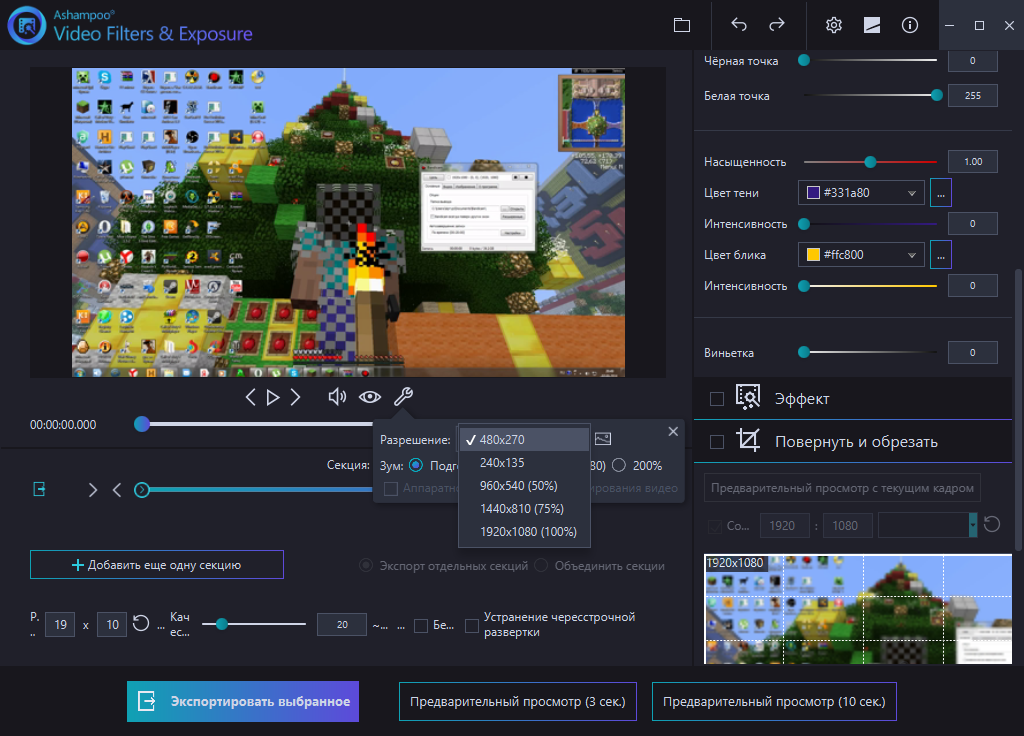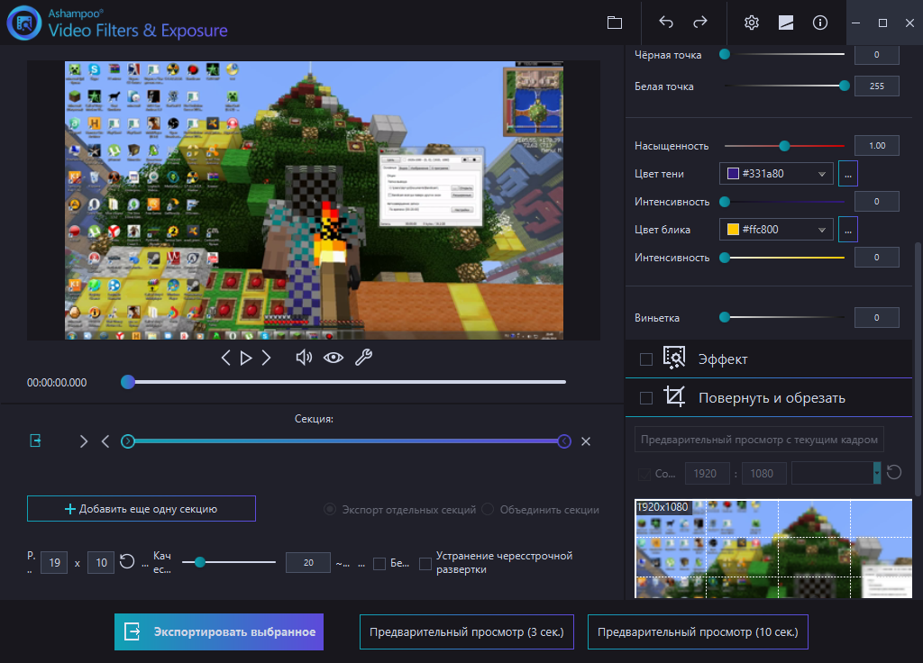 Работа с Ashampoo Video Filters and Exposure