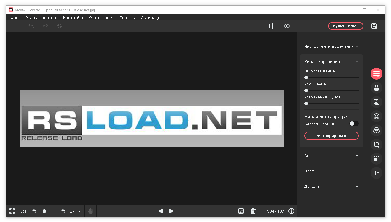 Movavi Picverse сочетает в себе простоту интерфейса и мощные функции редактирования изображений. Программа поддерживает работу с файлами любых разрешений и форматов, что делает её универсальным решением для начинающих и опытных пользователей. Благодаря интуитивно понятному дизайну, справиться с редактированием может даже тот, кто впервые работает с фоторедакторами. Поддержка русского языка значительно упрощает освоение всех возможностей софта.