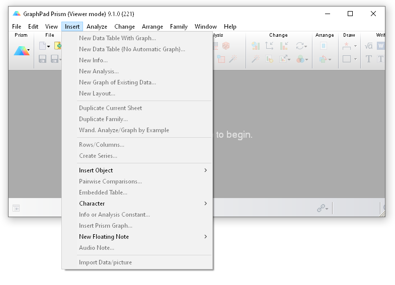 - GraphPad Prism поддерживает восемь типов таблиц данных, оптимизированных под определённые виды анализа, включая доз-ответные кривые и кинетику связывания.