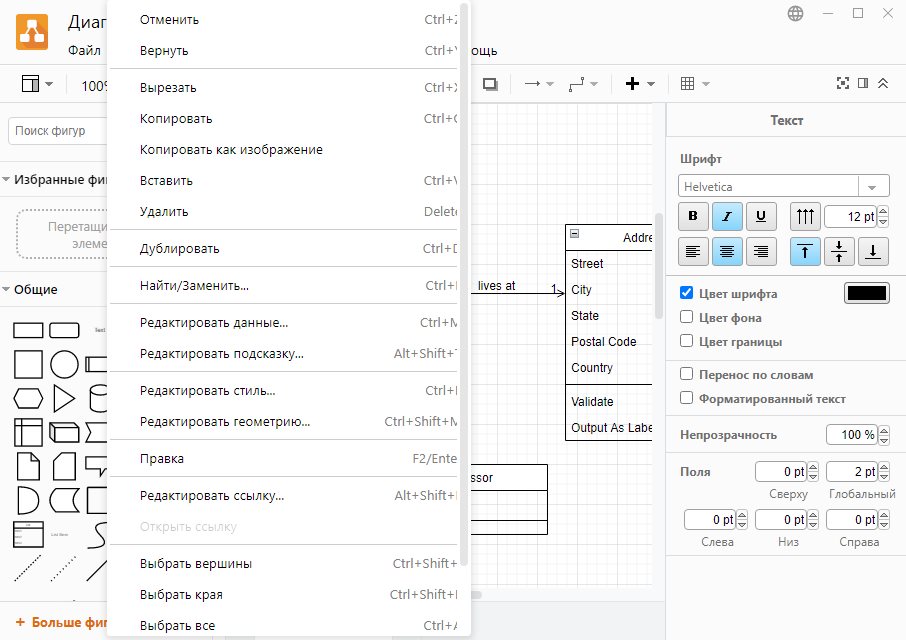 - Она предлагает обширные библиотеки фигур, включая элементы для сетевых схем, электрических цепей, UML, ERD и бизнес-процессов.