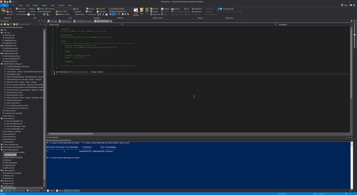 PrimalScript сочетает в себе функции редактора кода, отладчика, компилятора и системы развертывания, формируя единое рабочее пространство для автоматизации задач.