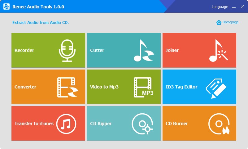 Renee Audio Tools 1.0.0 предоставляет пользователям широкий набор возможностей для работы с аудиоданными без необходимости использовать сложные профессиональные редакторы. Программа занимает мало места на жестком диске — всего 40 МБ, что делает её подходящим решением для устройств с ограниченными ресурсами. Интерфейс разделен на девять отдельных модулей, каждый из которых отвечает за свою функцию, что упрощает навигацию и позволяет быстро находить нужный инструмент.