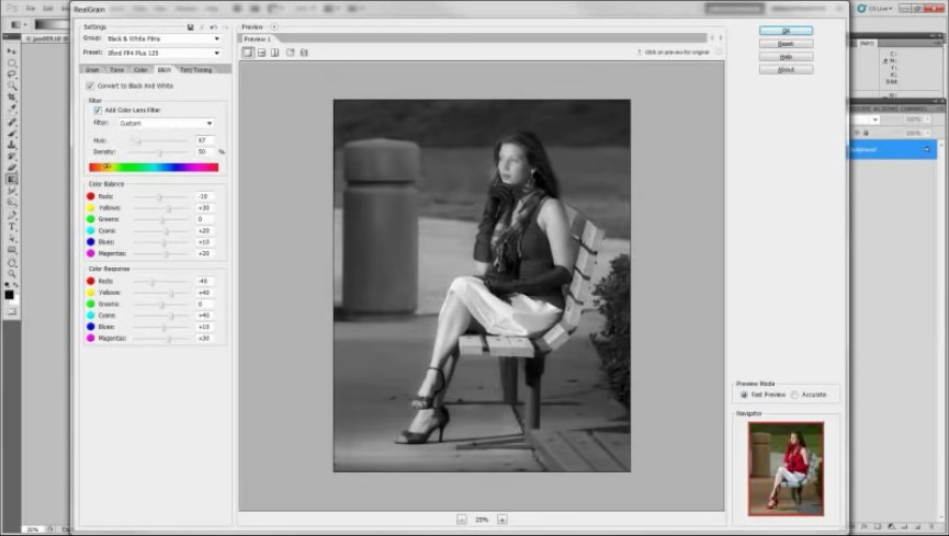 С помощью Imagenomic Realgrain можно достоверно имитировать зернистость пленки, сохраняя при этом детализацию и динамический диапазон изображения.
