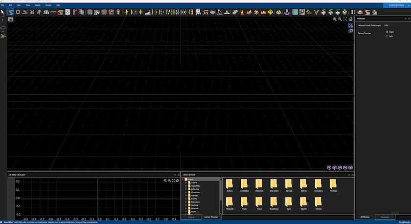 После установки Mathworks RoadRunner пользователь получает доступ к графическому интерфейсу, ориентированному на проектирование дорог и дорожной инфраструктуры. Процесс создания сцены начинается с построения осевой линии дороги, к которой затем добавляются полосы, обочины, бордюры и разметка. Можно задавать параметры уклонов, виражей, пересечений и прилегающей застройки. В сцену легко импортируются 3D-модели из внешних источников. Для настройки поведения транспортных средств и тестирования сценариев используется интеграция с Simulink, где моделируются реакции систем на внешние условия. Готовые проекты экспортируются в форматы, пригодные для использования в симуляторах виртуальных испытаний.