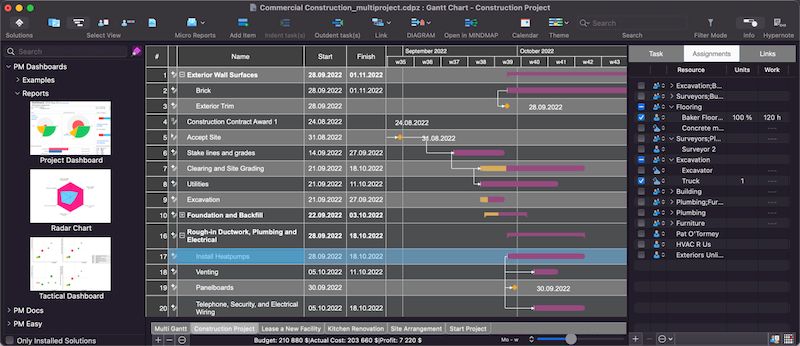 ConceptDraw PROJECT представляет собой комплексное решение для управления проектами, сочетающее в себе функциональность, удобство и высокую степень визуализации. Программа позволяет создавать подробные графики, планировать сроки выполнения задач, управлять загрузкой персонала и контролировать исполнение проекта в реальном времени. Архитектура приложения ориентирована на гибкость и адаптивность, что особенно ценно при работе с проектами разной сложности и масштаба.
