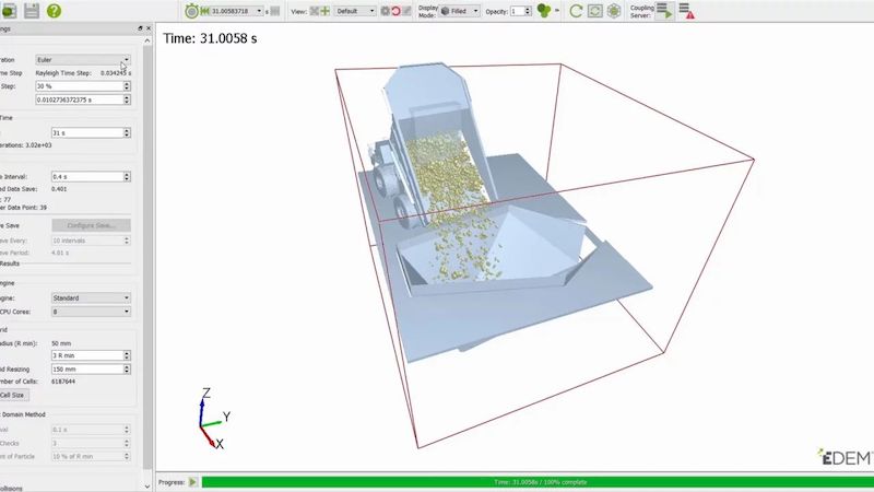 Работа в Altair EDEM начинается с импорта геометрии оборудования, которую можно получить из внешних CAD-приложений. Далее пользователь задаёт тип сыпучего материала, включая физические свойства частиц — размер, форму, плотность, коэффициенты трения и восстановления. После настройки процесса — таких параметров, как скорость подачи, угол наклона и вибрации — запускается симуляция. Полученные данные подвергаются анализу: строятся графики износа, распределения давления, температуры и скорости частиц. Все этапы поддерживаются интуитивным графическим интерфейсом, что упрощает освоение даже для новых пользователей, не имеющих глубокого опыта в численном моделировании.