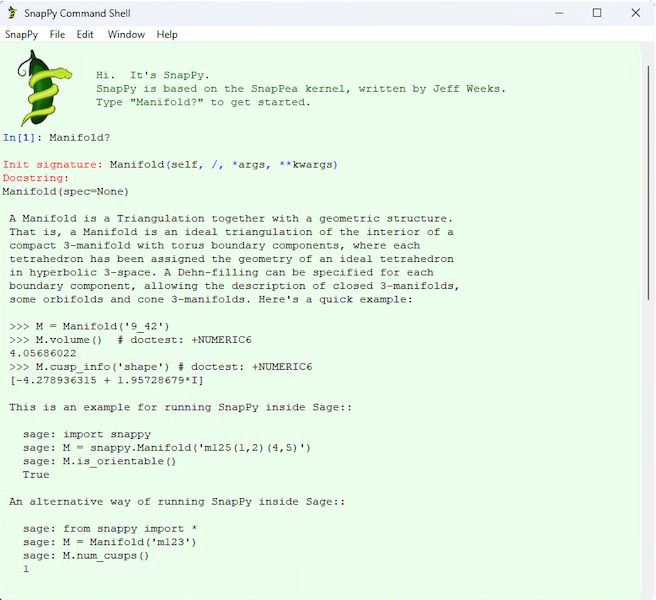 SnapPy 3.1 представляет собой специализированное программное обеспечение, ориентированное на изучение топологических свойств трехмерных многообразий. Его основная цель — предоставить удобную и эффективную платформу для моделирования и анализа сложных пространств, особенно тех, что допускают гиперболическую метрику. Программа активно используется в математических исследованиях, в частности в области низкоразмерной топологии, и поддерживает широкий спектр операций, включая построение триангуляций, вычисление объемов и анализ деформаций структур.
