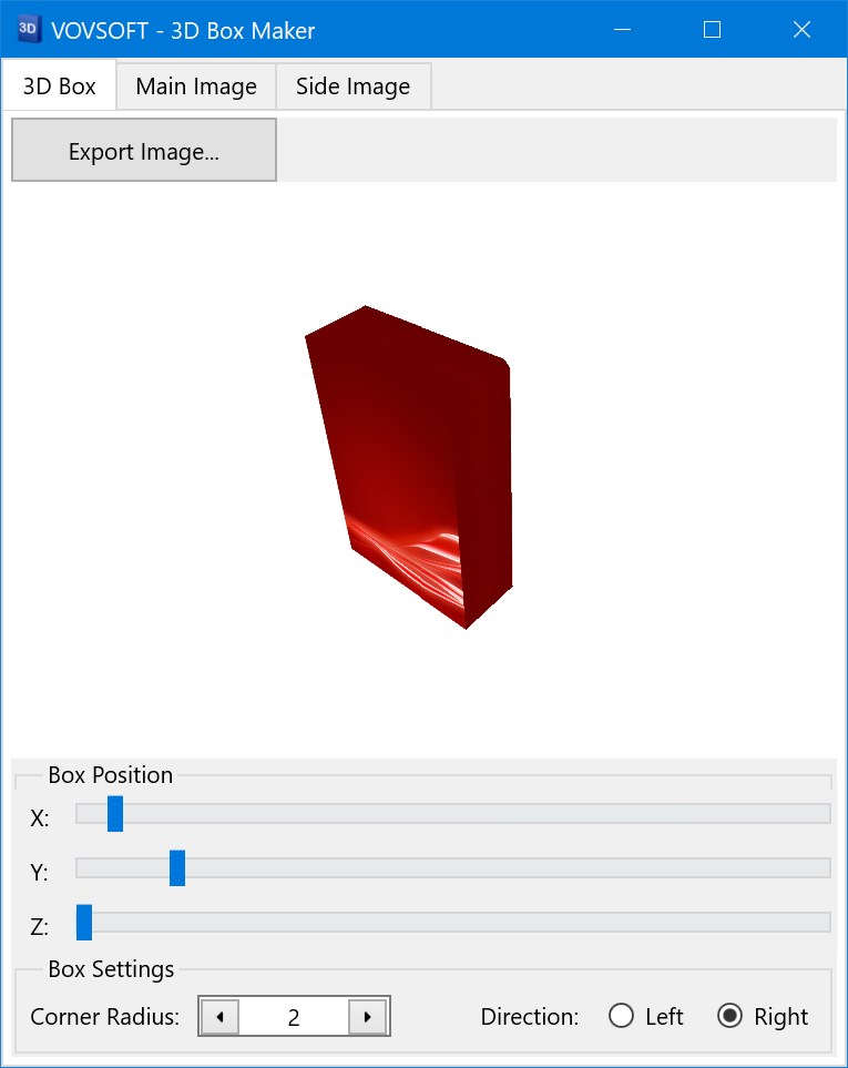 VovSoft 3D Box Maker 1.0 — это компактное приложение для создания реалистичных 3D-изображений упаковки продуктов из 2D-макетов. Программа идеально подходит для дизайнеров, маркетологов и предпринимателей, которым необходимо быстро и бесплатно подготовить визуальное представление товара. Благодаря простому интерфейсу и минимальным требованиям, софт позволяет преобразовать плоские картинки в объёмные коробки, подчеркивая уникальность продукта.