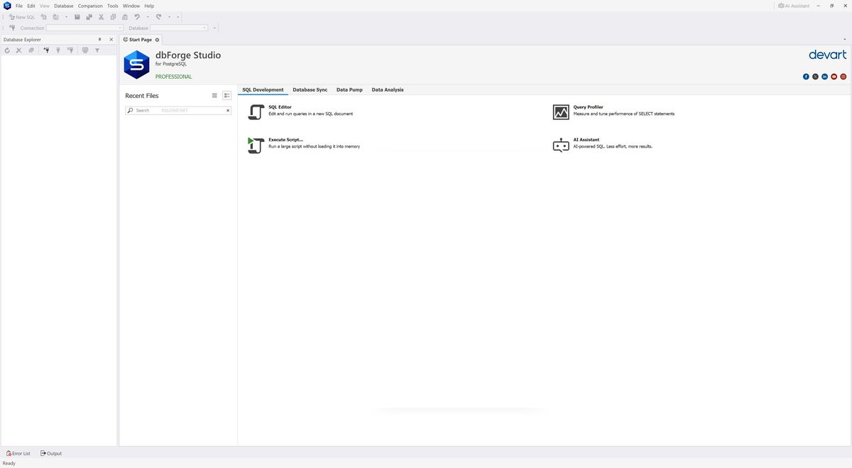 dbForge Studio для PostgreSQL Pro — мощная среда разработки, предназначенная для эффективной работы с базами данных PostgreSQL, включающая инструменты для редактирования, анализа, администрирования и миграции данных, а также визуализации и автоматизации задач.
