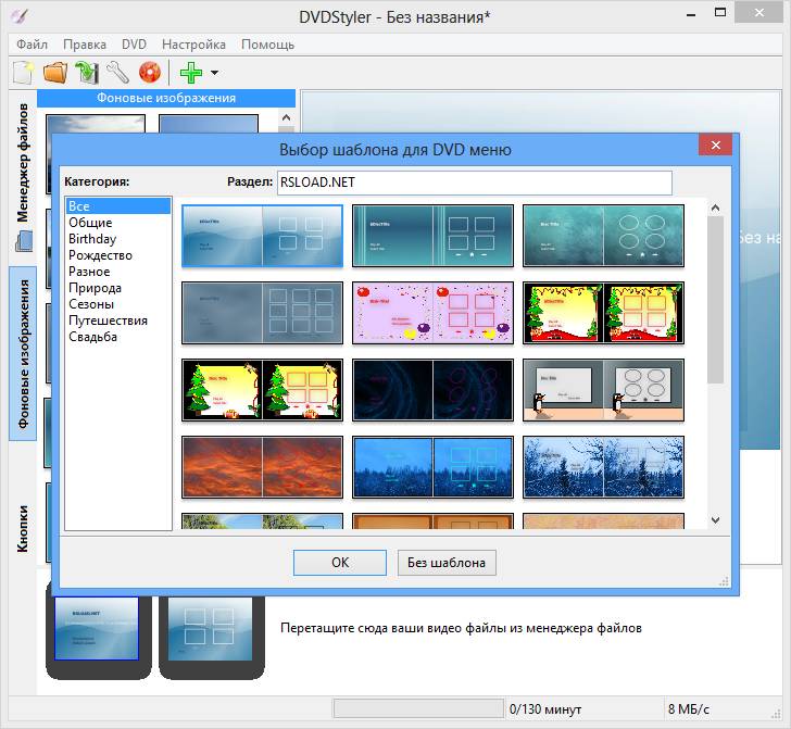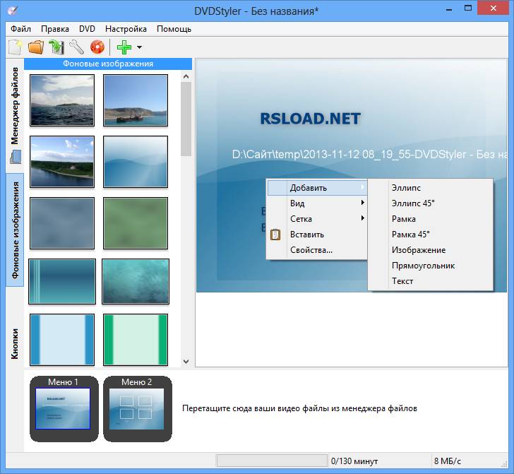 Работа с DVDStyler