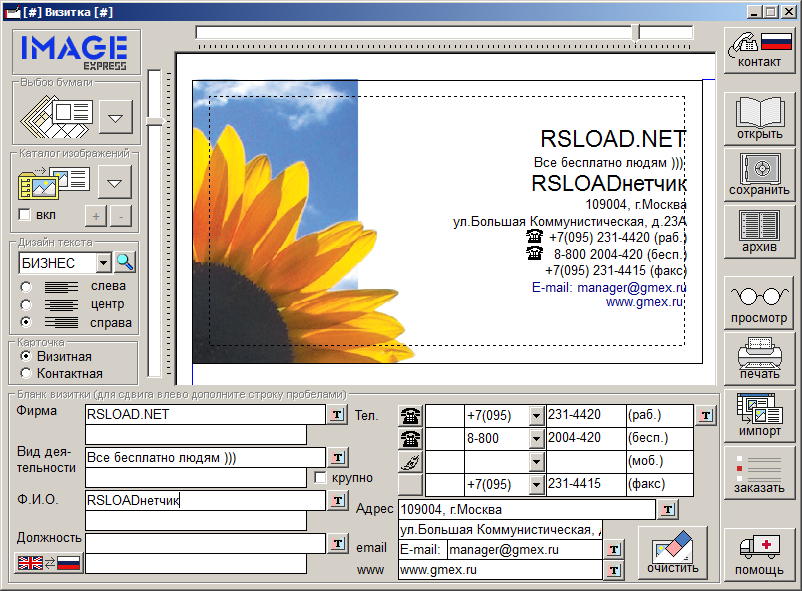 - Программа позволяет создать визитку самостоятельно без помощи дизайнера