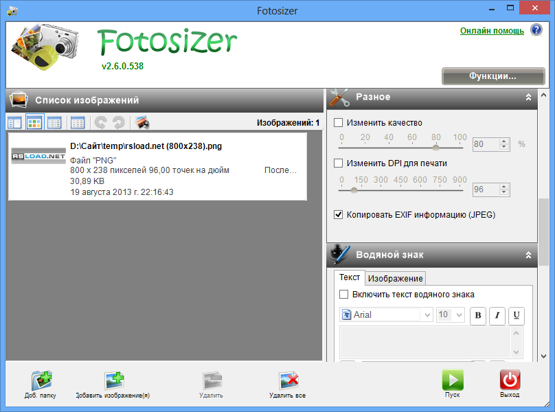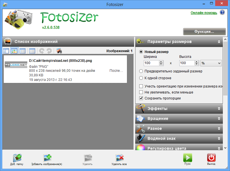 Работа с Fotosizer