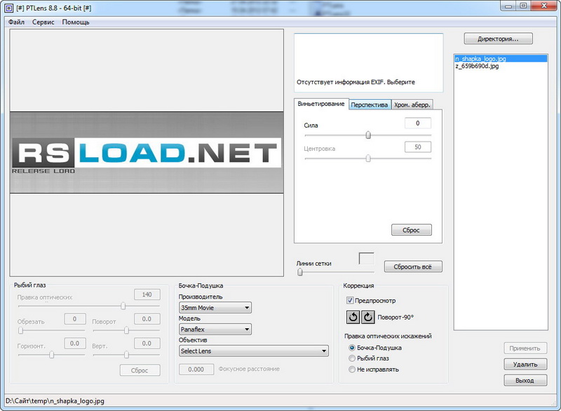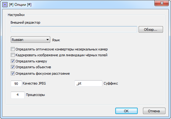 - Автоматическое определение параметров камеры и объектива по метаданным EXIF.