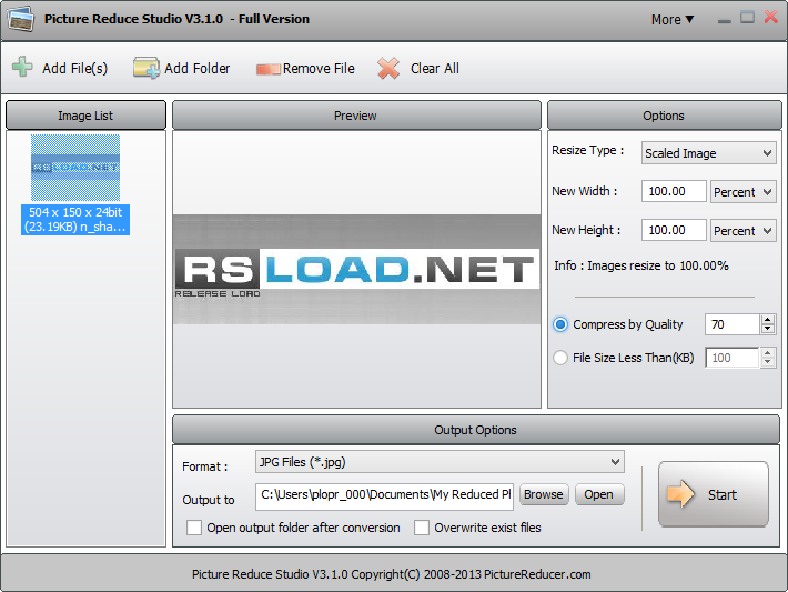 Работа с Picture Reduce Studio