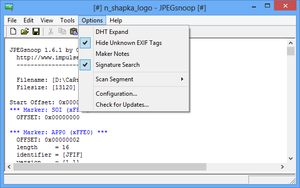 JPEGsnoop v1.8.0 — это мощный инструмент для анализа JPEG-файлов, разработанный с целью выявления признаков редактирования изображений и определения их исходного происхождения. Программа способна распознавать модели цифровых камер, а также устанавливать, обрабатывался ли снимок в графических редакторах. Утилита работает локально, не требует подключения к интернету и доступна для использования бесплатно.