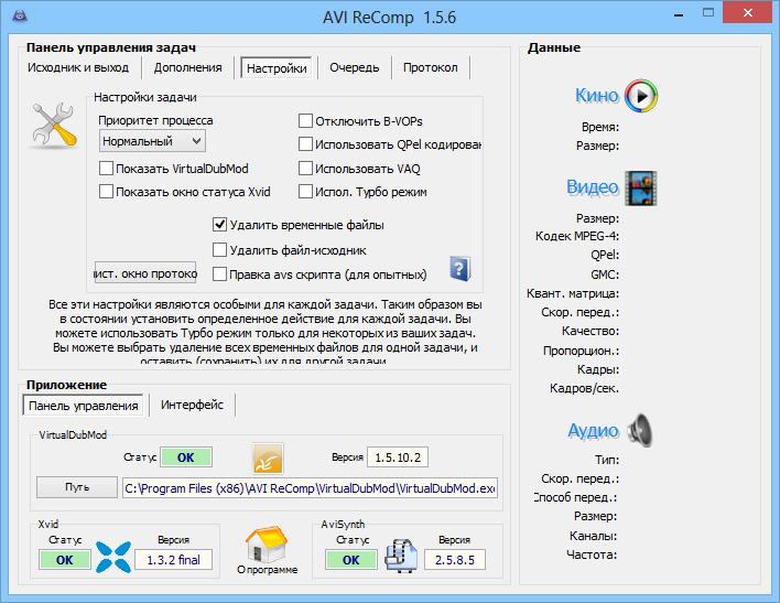AVI ReComp 1.5.6 разработана для тех, кто работает с видео в устаревшем, но до сих пор востребованном формате AVI. Утилита интегрирует такие компоненты, как VirtualDubMod и AviSynth, что обеспечивает стабильную работу с видеопотоками и высокую точность обработки. Благодаря встроенной поддержке кодека XviD, пользователи получают возможность эффективно сжимать данные, сохраняя приемлемое качество изображения. Программа поддерживает пакетную обработку, что особенно ценно при работе с множеством файлов.