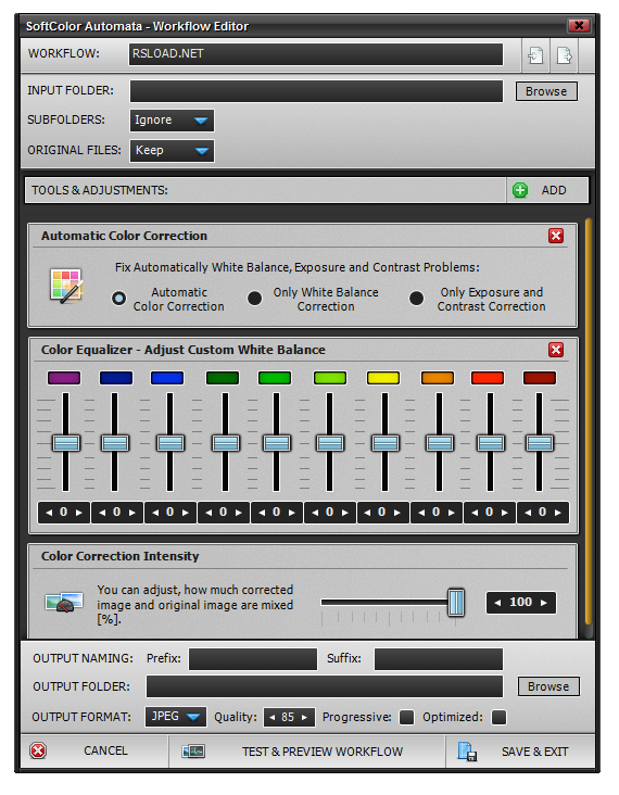 - Автоматизация цветовой коррекции, контраста и яркости в пакетном режиме