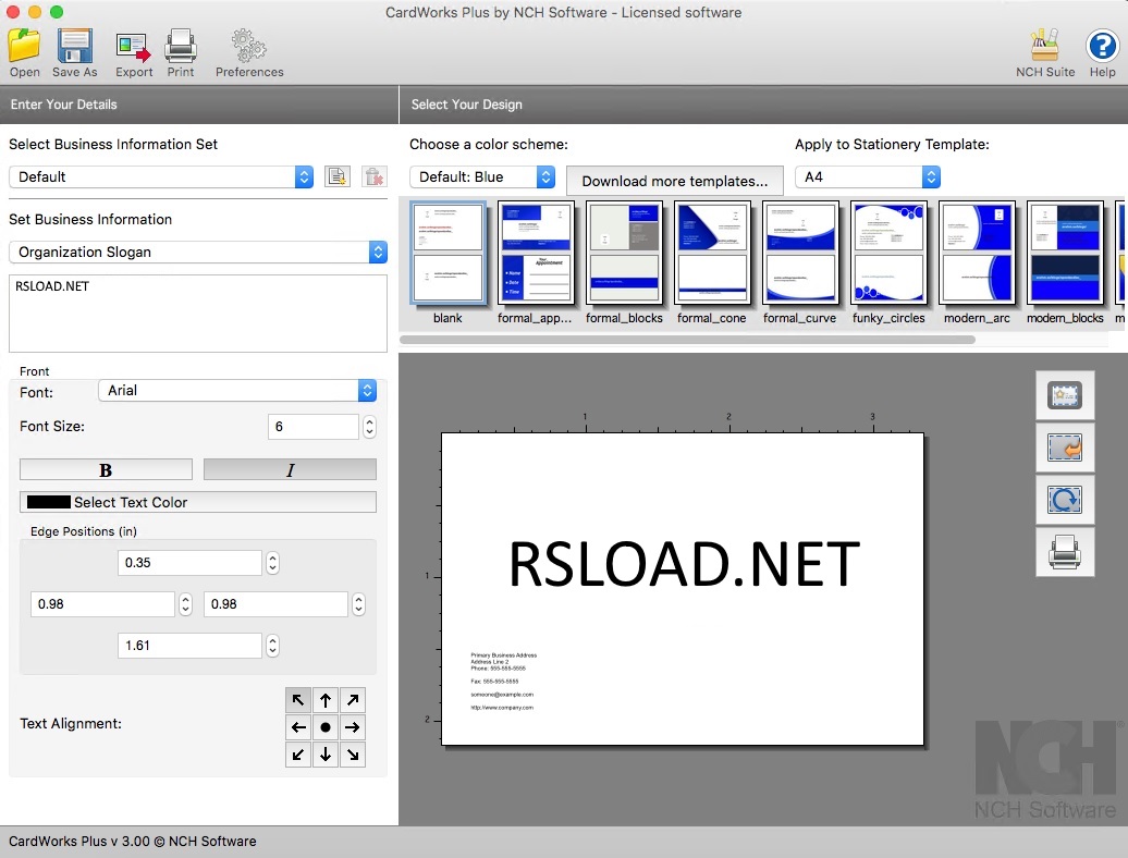 NCH CardWorks Plus — это специализированное программное обеспечение для быстрого и удобного создания визиток с нуля или на основе готовых шаблонов. Программа поддерживает точное позиционирование элементов, работу с изображениями и текстом, а также экспорт в PDF и печать на стандартных листах. Подходит как для домашнего, так и для делового использования.