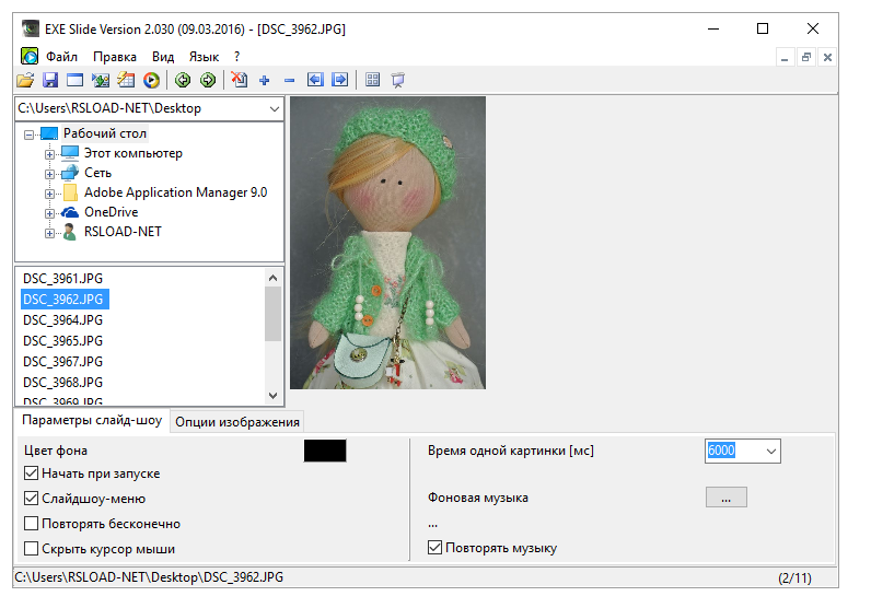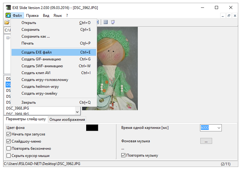 Работа с Alternate Pic View EXE Slide