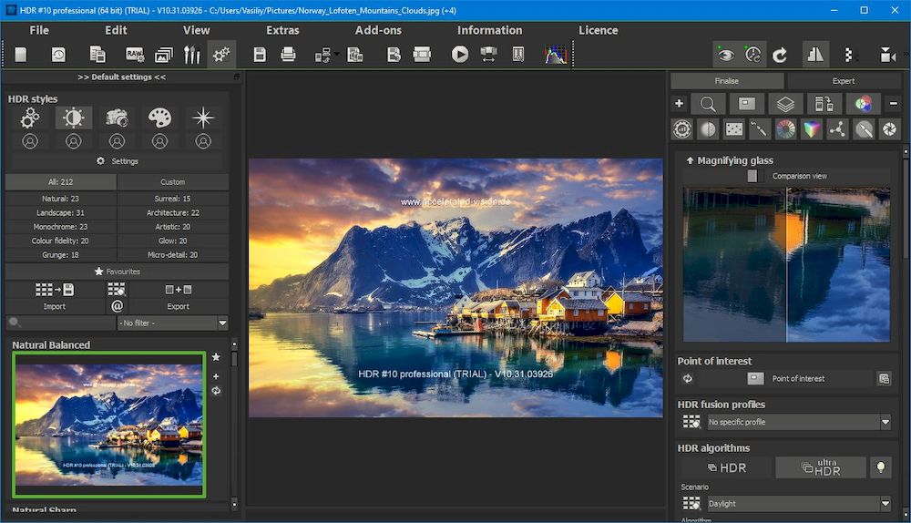 Franzis HDR 11 Pro — это специализированное программное обеспечение, разработанное для обработки изображений методом HDR (High Dynamic Range). Такой способ позволяет объединять несколько фотографий с различными уровнями экспозиции в один снимок с детализированными тенями и яркими светлыми участками. Благодаря этому достигается фотореалистичность и визуальная насыщенность, недоступная при стандартной обработке. Программа поддерживает работу с RAW-файлами, что особенно важно для профессионалов, стремящихся сохранить максимальное качество изображения.
