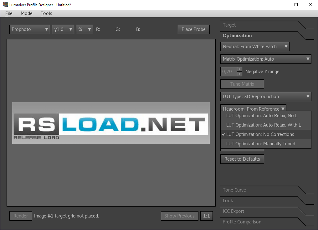 После запуска программы в правой части интерфейса отображается кнопка «Drop image», с помощью которой пользователь загружает тестовое изображение для калибровки. Далее доступны различные категории настроек, позволяющие корректировать цветовой баланс, насыщенность, контрастность и другие параметры. Каждое изменение отображается в реальном времени, что упрощает процесс подбора оптимальных значений. Созданный профиль можно сохранить и использовать в дальнейшем, а также импортировать в графические приложения, поддерживающие стандарты ICC и DCP. Процесс калибровки занимает минимальное время, особенно если уже есть базовый профиль для похожих условий съёмки. Программа не требует подключения к интернету и работает автономно, что повышает её удобство.