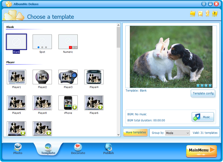 AlbumMe 5.9.0 — это мощное приложение для создания слайд-шоу из фотографий и видеозаписей с поддержкой анимации, музыки, текстовых эффектов и различных шаблонов. Программа предлагает удобный интерфейс и широкий набор инструментов для визуального оформления проектов. Вы можете экспортировать результат в популярные видеоформаты или интерактивные файлы для публикации в интернете, сохраняя высокое качество и насыщенность.