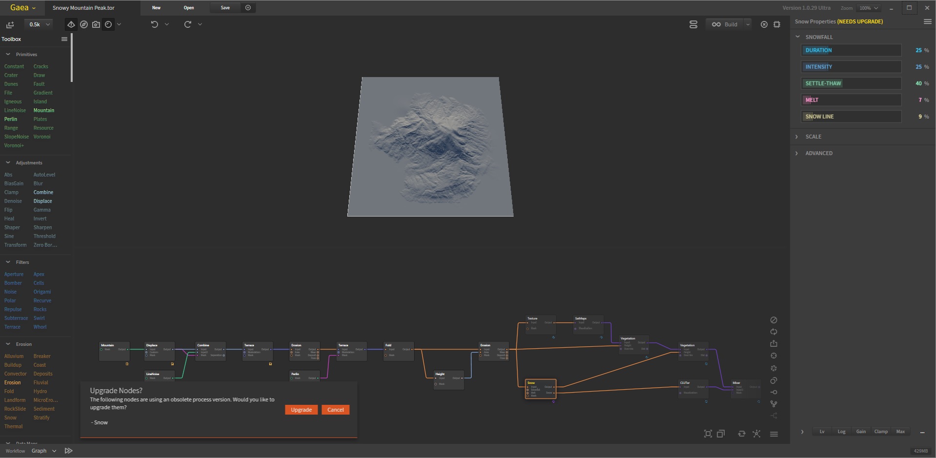 QuadSpinner Gaea представляет собой комплексное решение для процедурного моделирования ландшафтов, в котором каждый элемент рельефа формируется на основе карт высот. Работа строится вокруг узловой системы, где пользователь соединяет различные ноды, отвечающие за шум, эрозию, осадки и другие природные процессы. Такой подход даёт полный контроль над каждым этапом создания пейзажа и позволяет вносить изменения в любой момент цепочки обработки.