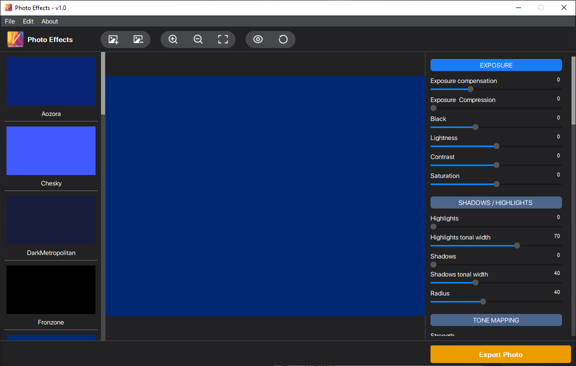 Photo Effects 2.0 — это компактное приложение для обработки изображений, объединяющее набор инструментов для быстрого применения фильтров и настройки визуальных параметров фотографий. Программа поддерживает редактирование фото с помощью предустановленных эффектов и гибкой настройки параметров, обеспечивая простой интерфейс и эффективную работу в реальном времени. Подходит как новичкам, так и тем, кто ищет легковесную альтернативу профессиональным редакторам.