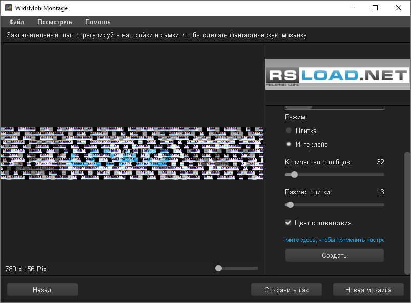Процесс генерации мозаики занимает считаные минуты, а итоговый результат можно сохранить в высоком качестве