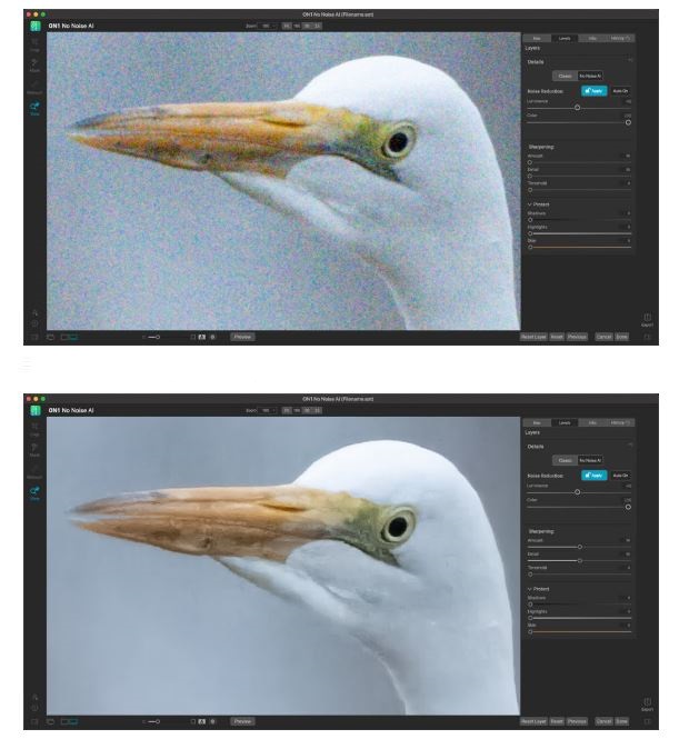 Использование ON1 NoNoise AI не требует глубоких познаний в области цифровой обработки. Интерфейс интуитивно понятен: пользователь загружает изображение, выбирает уровень шумоподавления вручную или в автоматическом режиме, а затем просматривает результат в реальном времени. Благодаря быстрым предварительным просмотрам, можно мгновенно оценивать различия между исходником и обработанной версией. После настройки параметров изображение можно экспортировать в исходном разрешении с минимальными потерями качества.