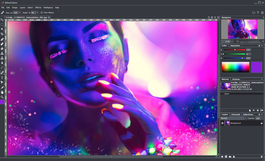 AliveColors — это не просто графический редактор, а полнофункциональная среда для обработки изображений, сочетающая в себе возможности профессионального ПО и доступность для домашних пользователей.
