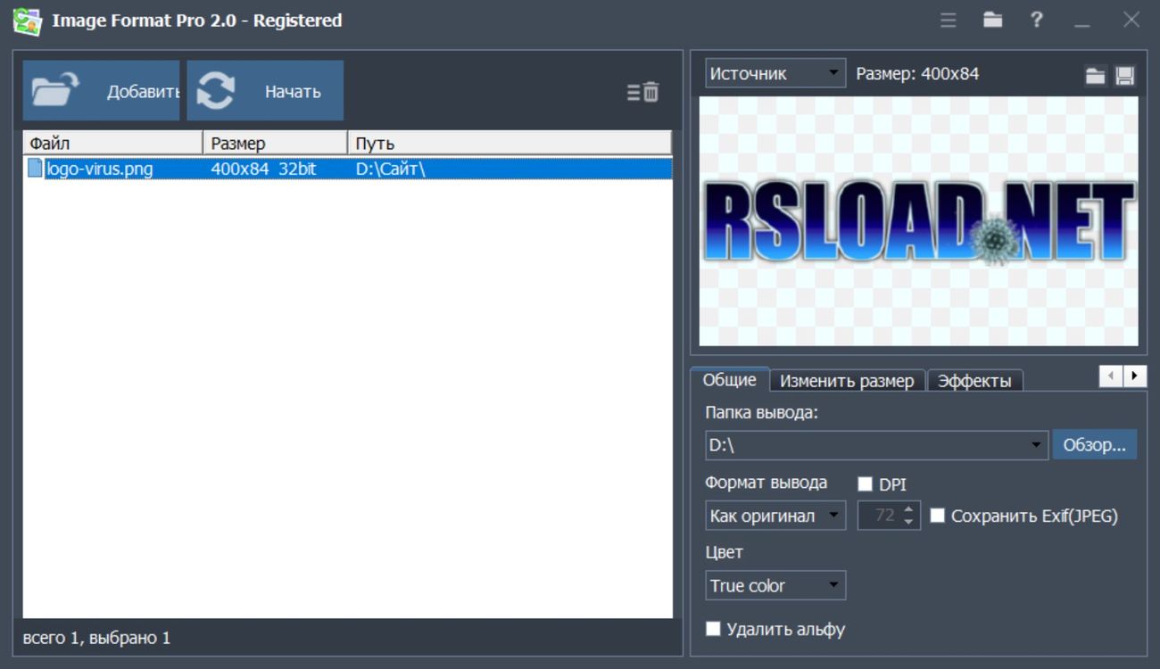 Работа с Image Format Pro