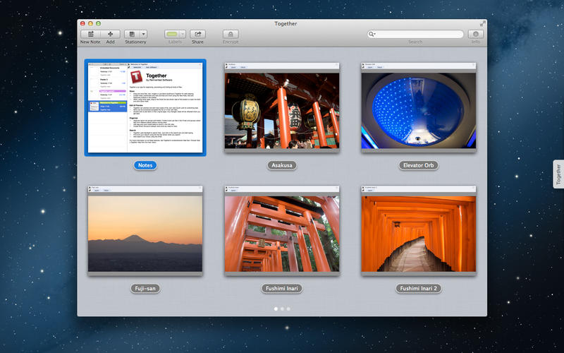 Together — это мощный и удобный инструмент для управления файлами на компьютере, разработанный компанией Reinvented Software. Программа позволяет собирать, систематизировать и быстро находить документы, изображения, музыку, видео, закладки и другие данные в одном месте. Благодаря интуитивному интерфейсу и продуманной структуре, работа с файлами становится проще и эффективнее.